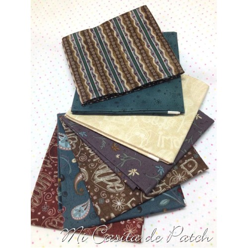 Traemos al blog lotes de telas de patchwork en fat quarters. Los lotes están formados por telas de una gama de colores ó de una colección concreta y según el lote varía el número de fat quarters que lo componen.